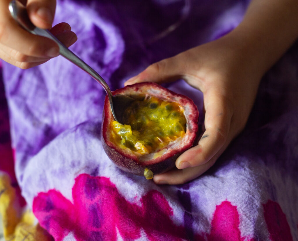Passionfruit is in season in the late summer months and into early autumn. And it’s such a delicious treat. My daughter has developed a taste for them and I thought what better way to add a delicious touch to a summery smoothie.